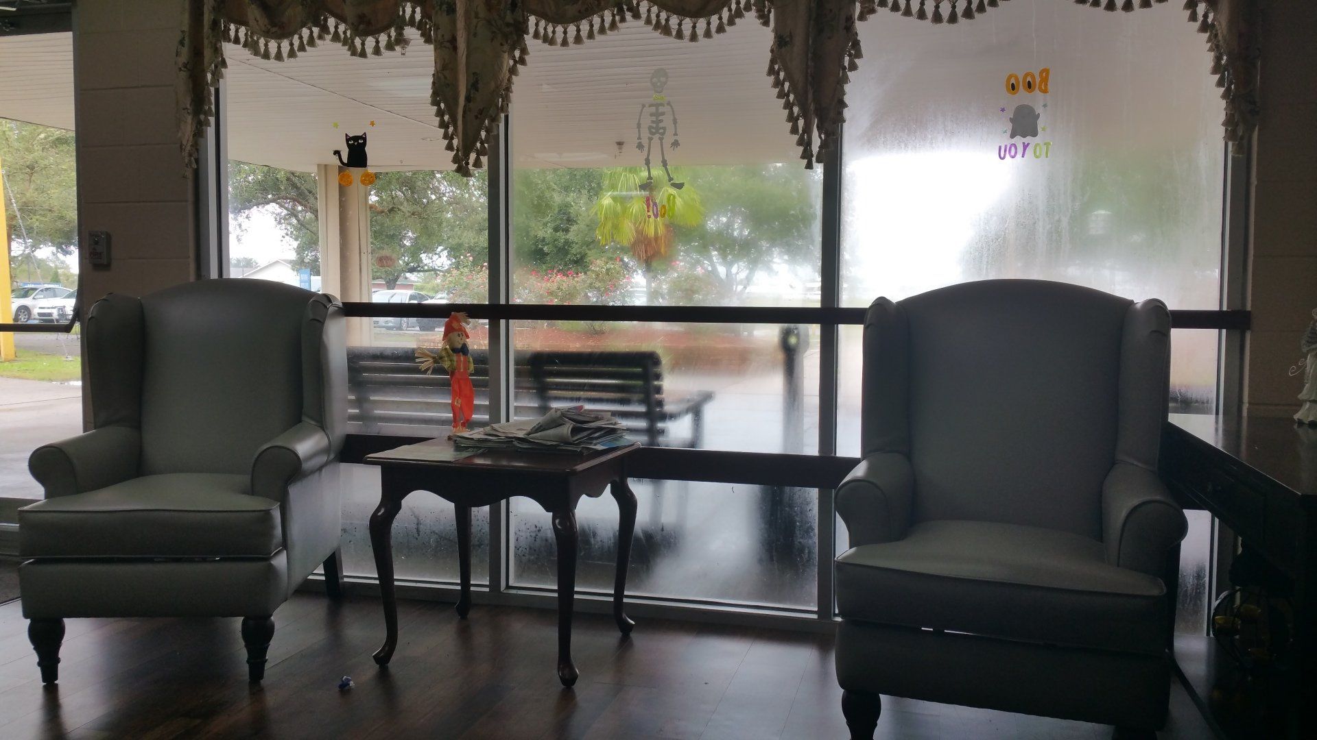 Residents and visitors enjoy a beautiful and comfortable parlor.