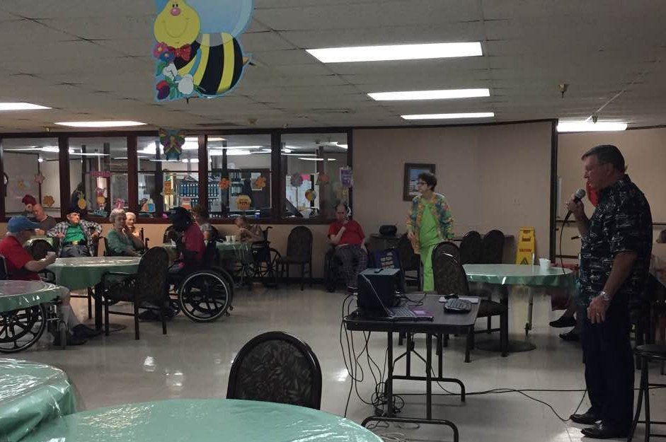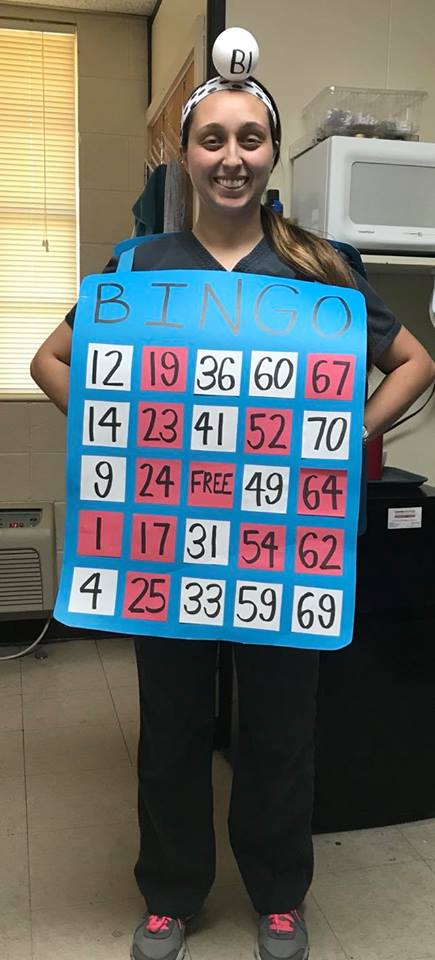 The St. Agnes Residents love to play Bingo. And, they loved the Halloween costume one of the nurses wore.
