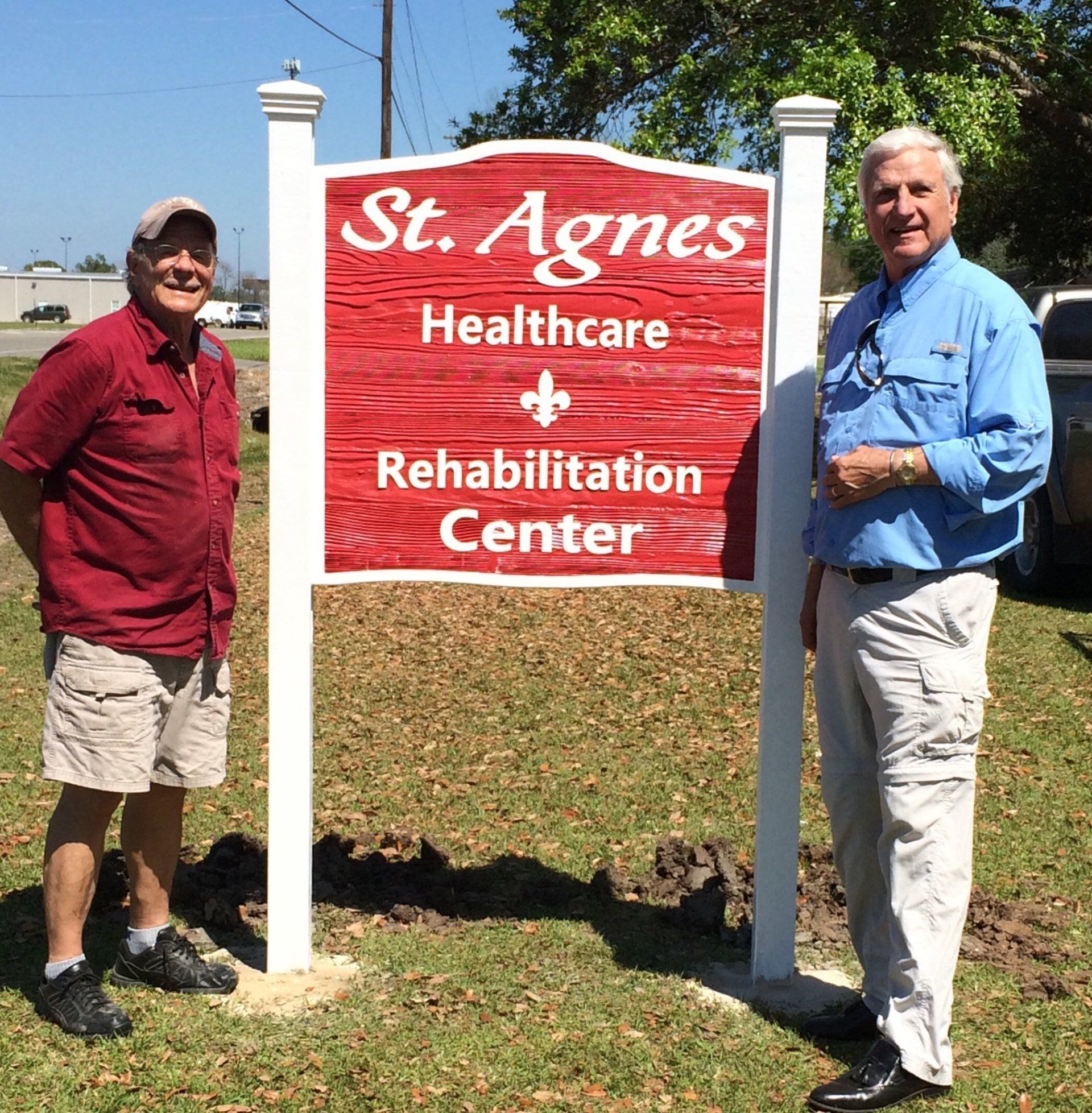 Visit us soon. We are located at 606 Latiolais Road in Breaux Bridge, Louisiana. Signage makes St. Agnes easy to find. Nathan Cormier designed and installed the sign with Paul Hardy.