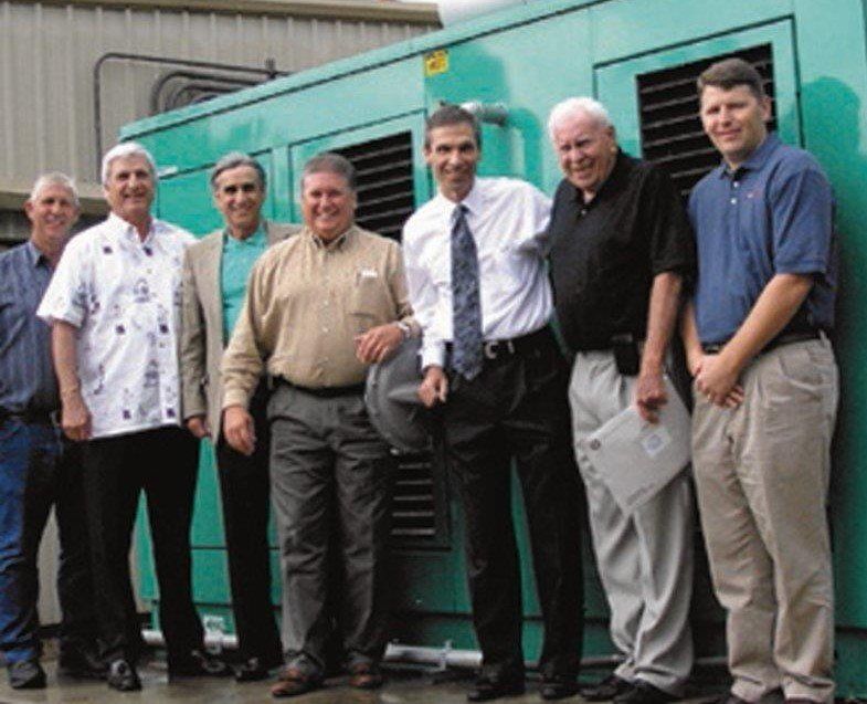 Pictured left to right are: Past Maintenance Supervisor Larry Savoy (deceased), President Paul Hardy, Former Mayor of Breaux Bridge Jack Dale Delhomme, Administrator/CEO Ricky Hayes, Vice President Fred Mills, Past President Johnny Raymond (deceased) and Genstar Representative Kelly Russell.